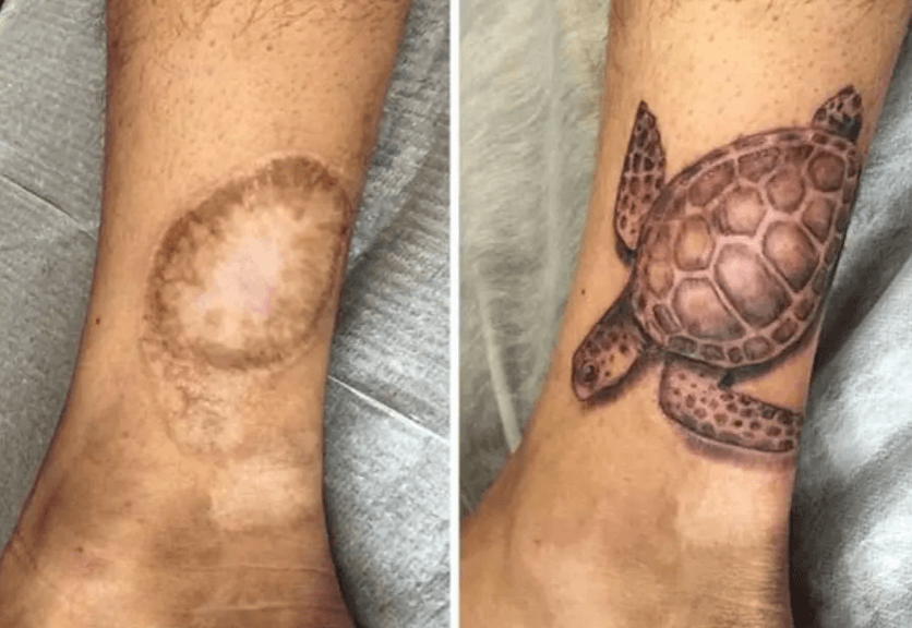 5.Les tatouages peuvent être utilisés par les personnes qui souhaitent masquer à peu près tout, des vergetures et des cicatrices aux taches de beauté et à la décoloration.