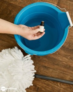 Après avoir mélangé votre solution d’eau de vadrouille pour nettoyer vos sols, ajoutez-y quelques gouttes d’huile essentielle de citron. L’huile de citron aidera à dissoudre les saletés graisseuses qui auraient pu se répandre sur votre sol, en plus elle donnera à vos sols un aspect brillant et une odeur fraîche!