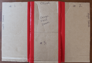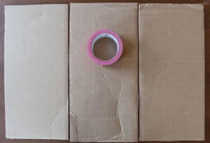 Si vous utilisez des morceaux de carton → Coupez un morceau de carton aussi large que vous souhaitez que votre t-shirt soit plié. (Le mien mesure 22cm de large et 43cm de long.) Coupez deux autres morceaux identiques. Collez les morceaux ensemble sur le devant et le dos, en laissant un peu de place pliante entre les morceaux de carton.