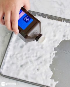 Pour aider à désinfecter votre vaisselle, ajoutez deux onces de peroxyde d’hydrogène à votre lave-vaisselle avec votre détergent ordinaire. Vous pouvez ajouter un coup de pouce assainissant à votre savon à vaisselle ordinaire en versant deux onces de peroxyde d’hydrogène directement dans la bouteille de savon.